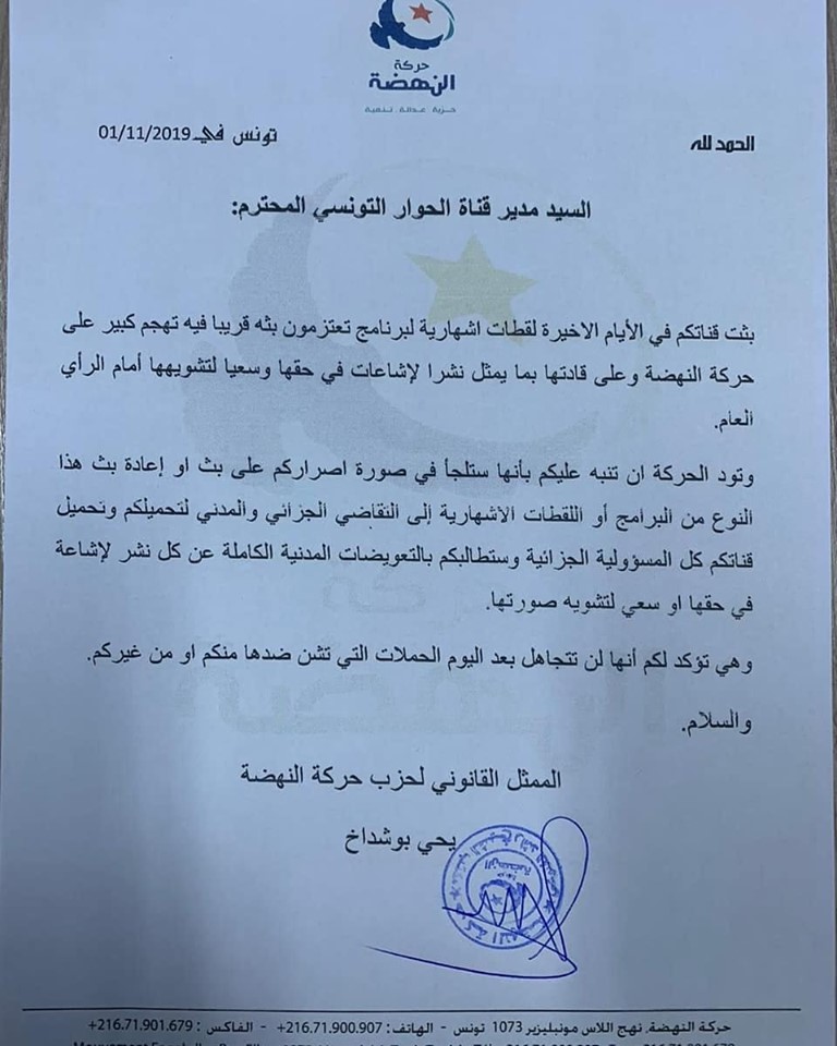 خطير: نص التنبيه الذي وجهته النهضة لسامي الفهري