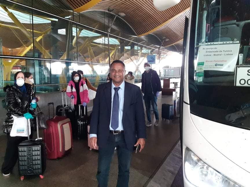 وقد تولت السفارة كراء حافلة لتأمين نقل المواطنين المذكورين عبر البر إلى مطار مدريد حتى يتسنى لهم السفر إلى تونس عبر رحلة شركة الخطوط الجوية الخاصة “Jasmin Airways”.