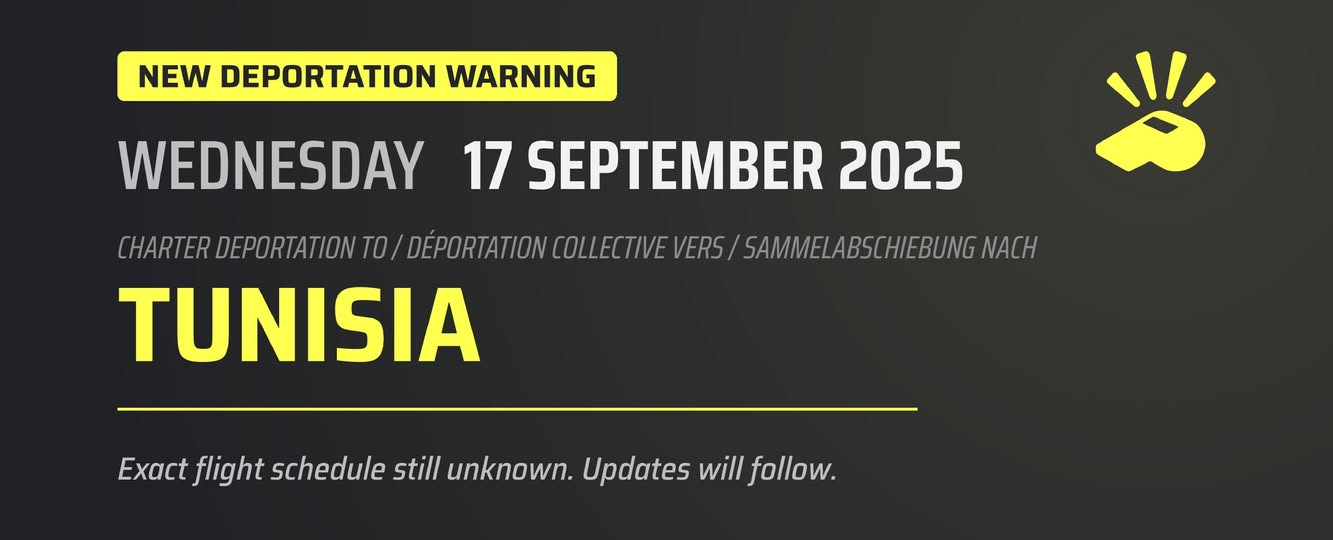 On 2 سبتمبر، 2025 by sarraمن المتوقع إقلاع طائرة ترحيل قسري لمهاجرين تونسيين من المانيا يوم 17 سبتمبر ليرتفع عدد رحلات الطرد الجماعي من المانيا الى 6 رحلات منذ بداية السنة تقوم المانيا بتنظيم عمليات طرد جماعي للمهاجرين غير النظاميين التونسيين او الذين يتم رفض طلبات لجوئهم منذ سنة 2017 استناد الى اتفاق تم توقيعه في 3 مارس 2017 ويتم